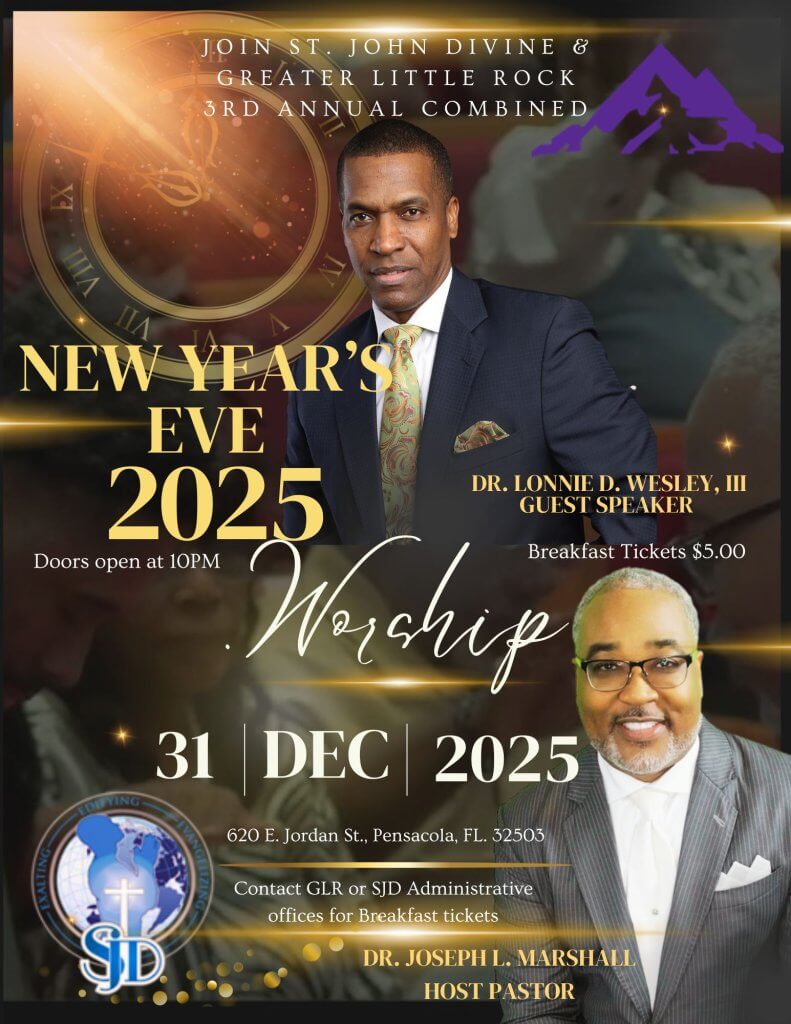 4. WATCH NIGHT WORSHIP (NEW YEAR’S EVE) EXPERIENCE. SJD and GLR (Greater Little Rock) will be worshipping with each other right here on the campus of S J D on December 31st @ 10pm. There’s no better way to end 2025 as well as start 2026 than right here in the house of God for in person worship. Make plans to join us!