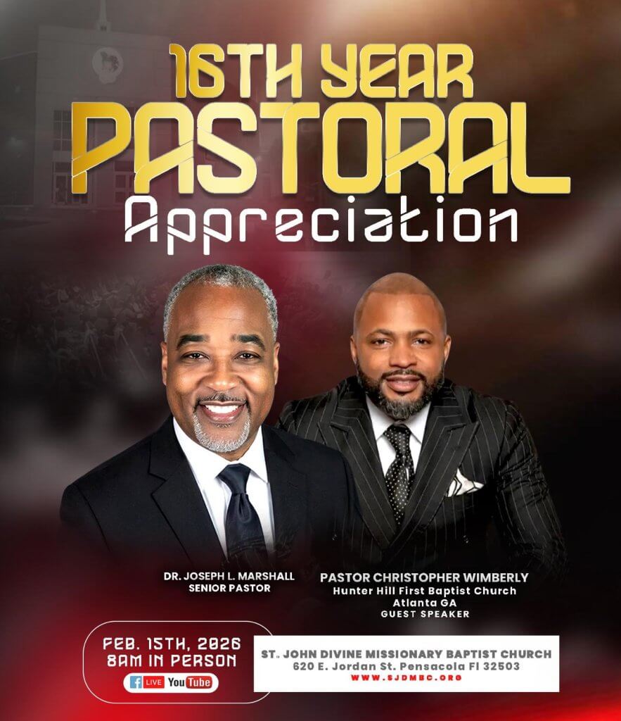 5. PASTOR’S 16TH APPRECIATION CELEBRATION. On Sunday, February 15th, during our 8am worship experience, we will celebrate our pastor’s 16th pastoral anniversary, we’re encouraging everyone to invite someone to church with you as well as wear either GRAY or BURUNDY on next Sunday. Our friend and brother Pastor Christopher Wimberly from Atlanta Georgia will be our special guest. Looking forward to worshipping the Lord as well as celebrating our pastor on next Sunday morning, asking everyone to make plans to join us on next Sunday.