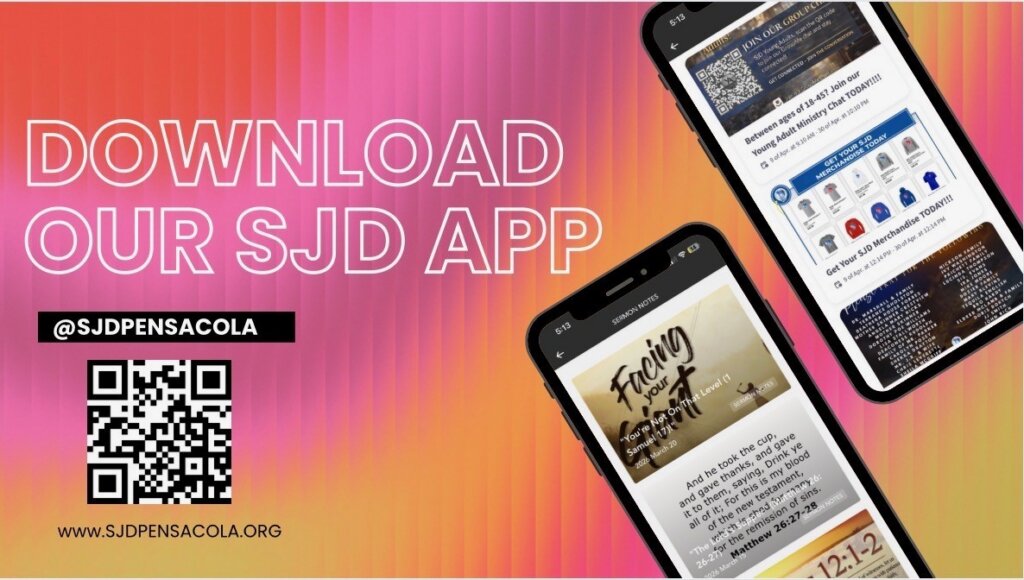 * SJD Pensacola App (Search “SJDPensacola” in app store, download)